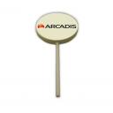 A conveniant chocolate lolly, with a milk chocolate base and white chocolate print area.