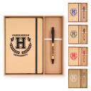 Bowie Bamboo ballpoint pen and Bowie Bamboo mechanical pencil, both of which feature a barrel made of eco-friendly, 100% renewable bamboo. Packed in a recycled Kraft paper box.