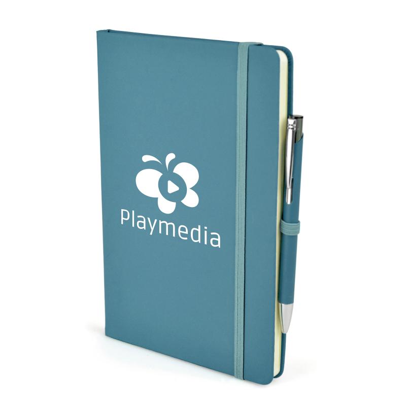 2-in-1 A4 Mole Notebook with a matching Mole Mole Mate Ball Pen, sourced to perfectly colour coordinate. The notebook features 80 lined sheets, back pocket, pen loop, elasticated closure and bookmark. The Mole Mate Ball Pen has a satin finish and black ink. (QS0344 & TPC982001)