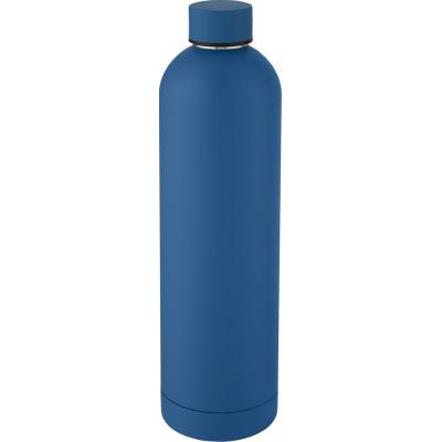 Large double-walled water bottle with 18/8 stainless steel vacuum construction and copper insulation that keeps drinks hot or cold for several hours. The construction also prevents condensation on the outside of the bottle, and the on-trend powder coating makes it extra durable. Stainless steel screw-on leakproof lid with durable stainless steel hand loop. Wide opening for easy filling, pouring and cleaning. BPA-free, tested and approved under German Food Safe Legislation (LFGB). Tested and approved for phthalates content according to REACH regulations. Perfect for ice cubes. Volume capacity is 1 L. Hand wash recommended. Presented in a recycled cardboard gift box. Stainless Steel, PP Plastic, Silicone Plastic.