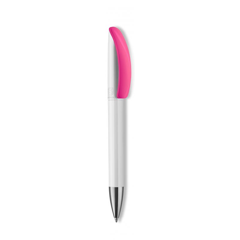 A new trendy and stylish product, perfectly aligned with the modern concept of a promotion Balanced from the top to bottom, a sinuous clip, extremely wide and simple to print, combined with the brightness of its arch, enhances all kind of logos A very smooth writing jumbo refill with black ink writing for over 2000m make this pen your perfect promotional choice