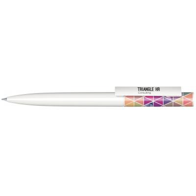 senator® Super Hit Polished push ball pen, Polished opaque body and clip surface, white barrel, coloured clip, senator® Magic Flow X20 refill. Ink colour: blue or black.